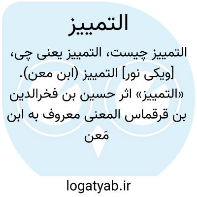 [ویکی نور] التمییز (ابن معن). «التمییز» اثر حسین بن فخرالدین بن قرقماس المعنی معروف به ابن مَعن (1034-1109ق)، که در آن خصلت های پسندیده اخلاقی با استفاده از منابع اهل سنت از آیات و روایات استخراج و بررسی شده است. کتاب به زبان عربی و در سال 1097ق نوشته شده است.