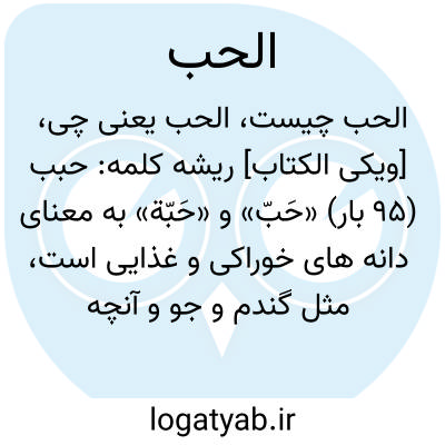 «حَبّ» و «حَبّة» به معنای دانه های خوراکی و غذایی است، مثل گندم و جو و آنچه که قابل درو کردن است. ولی گاهی به دانه های دیگر گیاهان نیز گفته می شود.