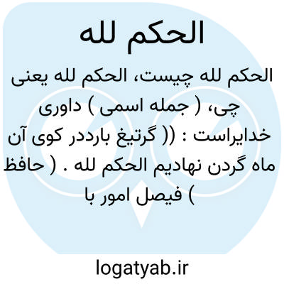 حکم و فرمان خدا را است، فیصل امور با خدا است. &delta، برای نشان دادن تسلیم خود در شرایط بد به زبان می آوردند: گر تیغ بارد در کوی آن ماه / گردن نهادیم الحکم للّه (حافظ: ۸۳۶ ).