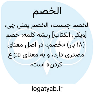 «خَصم» در اصل معنای مصدری دارد، و به معنای «نزاع کردن» است، ولی بسیار می شود که به طرفین نزاع نیز «خصم» می گویند، این کلمه، بر مفرد و جمع هر دو اطلاق می شود، و گاه جمع آن به صورت «خصوم» آمده است.