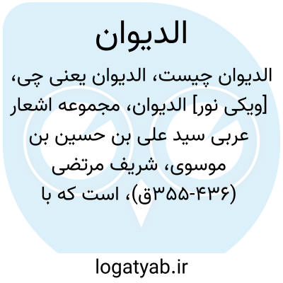 [ویکی نور] الدیوان، مجموعه اشعار عربی سید علی بن حسین بن موسوی، شریف مرتضی (355-436ق)، است که با تحقیق رشید صفار، عرضه شده است.
