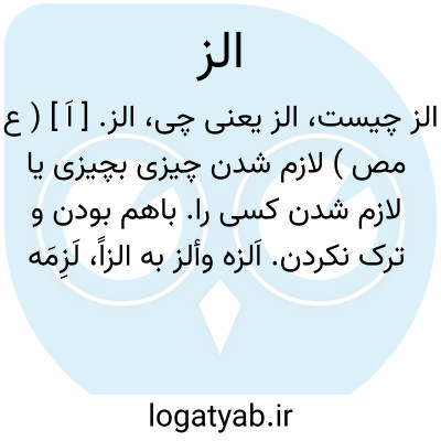 الز. [ اَ ] ( ع مص ) لازم شدن چیزی بچیزی یا لازم شدن کسی را. باهم بودن و ترک نکردن. اَلزه وألز به الزاً، لَزِمَه ُ. ( از ذیل اقرب الموارد ).