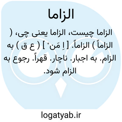 ( الزاماً ) الزاماً. [ اِ مَن ْ ] ( ع ق ) به الزام. به اجبار. ناچار. قهراً. رجوع به الزام شود.