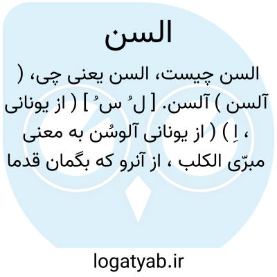 السن. [ اَ س َ ] ( ع ص ) زبان آور و فصیح. ج، لُسن. ( منتهی الارب ) ( آنندراج ). شخص فصیح و بلیغ. ( از اقرب الموارد ). زبان آورتر. لَسِن. ( اقرب الموارد ).