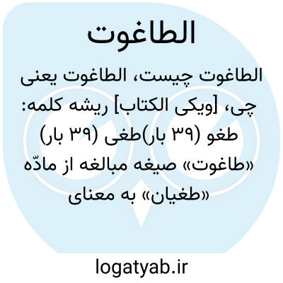 «طاغوت» صیغه مبالغه از مادّه «طغیان» به معنای تعدی و تجاوز از حدّ و مرز است، و به هر چیزی که سبب تجاوز از حدّ گردد، گفته می شود; از این رو شیاطین، بتها، حکام جبار و مستکبر و هر معبودی غیر از پروردگار، و هر مسیری که به غیر حق منتهی می شود، همه، طاغوت است.