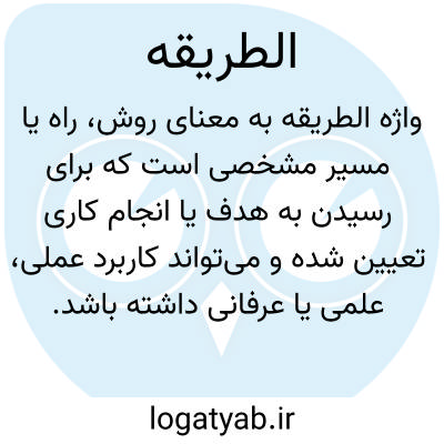 کلمه‌ی «الطریقه» در عربی به معنای روش، راه یا مسیر است. این واژه از ریشه‌ی عربی «طرق» گرفته شده است و برای اشاره به یک روش مشخص، راهکار یا مسیر مشخص برای رسیدن به هدف به کار می‌رود و می‌تواند معنای عرفانی، علمی یا عملی داشته باشد. در متون عرفانی و تصوف اسلامی، الطریقه به مسیر یا روش خاصی گفته می‌شود که صوفیان برای نزدیک شدن به خدا یا رسیدن به کمال انسانی دنبال می‌کنند. در علوم و فنون دیگر، الطریقه ممکن است به روش‌های علمی، آموزشی یا عملی اشاره داشته باشد. این واژه همچنین در مکالمات روزمره برای بیان شیوه انجام کاری یا مسیر مشخصی که باید طی شود استفاده می‌شود. از نظر معنایی، الطریقه با واژه‌هایی مثل روش، مسیر، راه و سبک هم‌معنی است. در متون دینی و عرفانی، این واژه اغلب با اصول اخلاقی، عبادت و معنویت همراه است.