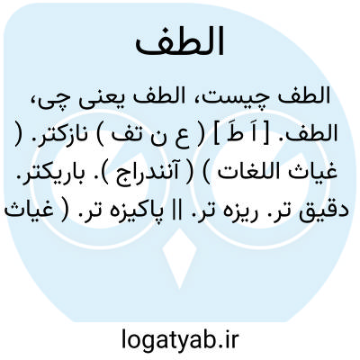 الطف. [ اَ طَ ] ( ع ن تف ) نازکتر. ( غیاث اللغات ) ( آنندراج ). باریکتر. دقیق تر. ریزه تر. || پاکیزه تر. ( غیاث اللغات ) ( آنندراج ). || نغزتر. خوشتر. بهتر: انظف بلاداﷲ طعاماً و الطفها شراباً. ( مافروخی در صفت اصفهان ). || مهربانتر. نرمتر. رجوع به لطیف شود.