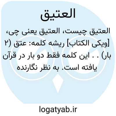.. این کلمه فقط دو بار در قرآن یافته است. به نظر نگارنده عتیق به معنی محترم است چنانکه در جای دیگر به جای آن «حرام» آمده است. این مطلب در «بیت» مشروحاً گفته شده است.