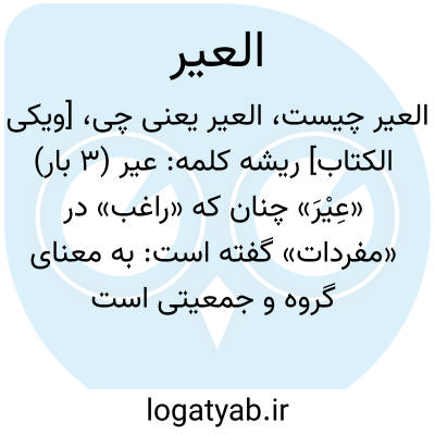کاروان.. راغب گوید: غیر به گروهی گفته می‏شود که بارهای طعام دارند و آن اسم مردان و شتران حامل طعام است هرچند گاهی در یکی هم استعمال می‏شود. نگارنده گوید: در آیه فوق در مطلق کاروان اعم از مردان و شتران به کار رفته و در آیه. در مردان کاروان، زیرا سرقت در اشخاص صادق است نه در شتران یعنی ای کاروانیان شما دزدانید و در آیه. مراد شتران است و «اهل» هم در قریه و هم در العیر مستتر است یعنی از اهل شهری که در آن بودیم و از اهل کاروان که در آن آمدیم بپرس. «العیر» فقط سه بار در قرآن مجید آمده است که گفته شد.