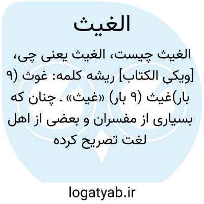 باران. طبرسی فرموده: بارانی که در وقت حاجت آید که آن از غوث است و آن نصرتی است که در شدت حاجت آید و ضرر را از بین ببرد. آیه. قول وی را تقویت می‏کند یعنی خدا آن است که باران را پس از نومیدی مردم می‏آورد نومیدی در وقت حاجت است این لفظ در آیه.. نیز آمده است.. «یُغاثُ» ممکن از غوث یا از غیث باشد یعنی پس از آن سالی می‏آید که در آن مردم باران بیابند یا به وسیله باران و نعمت خداوند یاری کرده شوند.. «اِسْتِغاثة» ممکن است از غوث یا از غیث باشد و در «غوث» گذشت.
