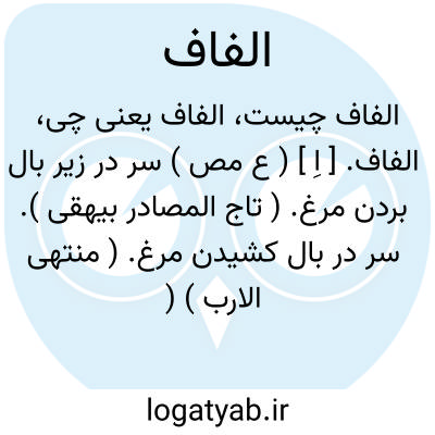 الفاف. [ اِ ] ( ع مص ) سر در زیر بال بردن مرغ. ( تاج المصادر بیهقی ). سر در بال کشیدن مرغ. ( منتهی الارب ) ( آنندراج ) ( از اقرب الموارد ). || سر در جبه خود فروبردن کسی. ( از اقرب الموارد ) ( از قطر المحیط ). الف فلان؛ جعل رأسه فی جبته. ( از تاج العروس ).