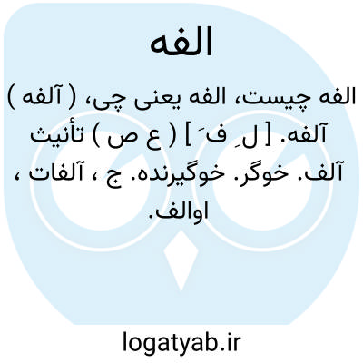 ( آلفه ) آلفه. [ ل ِ ف َ ] ( ع ص ) تأنیث آلف. خوگر. خوگیرنده. ج، آلفات، اوالف.