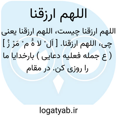 اللهم ارزقنا. [ اَل ْ لا هَُ م ْ مَرْ زُ ] ( ع جمله فعلیه دعایی ) بارخدایا ما را روزی کن. در مقام آرزو کردن چیزی بر زبان آرند.