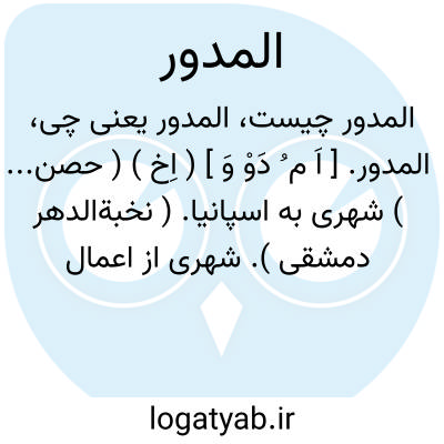 المدور. [ اَ م ُ دَوْ وَ ] ( اِخ ) ( حصن... ) شهری به اسپانیا. ( نخبةالدهر دمشقی ). شهری از اعمال طلیطله. ( نفح الطیب ).