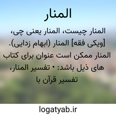 [ویکی فقه] المنار (ابهام زدایی). المنار ممکن است عنوان برای کتاب های ذیل باشد: • تفسیر المنار، تفسیر قرآن با بیان شیخ محمد عبده و املای سید محمد رشیدرضا• المنار فی علوم القرآن، تالیف دکتر محمد علی الحسن، استاد علوم قرآن و تفسیر در دانشکده شریعت دانشگاه عمان و نیز دانشکده عربی دانشگاه دبی