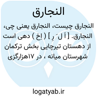 النجارق. [ اَ ل َ رِ ] ( اِخ ) دهی است از دهستان تیرچایی بخش ترکمان شهرستان میانه، در 17هزارگزی شمال میانه و 28 هزارگزی خاور ترکمان. کوهستانی و معتدل است. سکنه آن 1100 تن شیعه ترکی زبانند. آب آن از چشمه، و محصول آن غلات، حبوبات، برنج،پنبه و نخود سیاه، و شغل مردم زراعت و گله داری است.راه مالرو دارد. ( از فرهنگ جغرافیایی ایران ج 4 ).