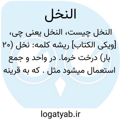درخت خرما. در واحد و جمع استعمال میشود مثل. که به قرینه وصف در جمع بکار رفته و مثل. واحد آن نَخْلَة است نحو. جمع آن نخیل میباشد. به قولی نخیل اسم جمع است طبرسی ذیل آیه 266 بقره. نَخْل را جمع نَخْلَة گفته و گوید: اصل نخل به معنی بیختن و الک کردن آرد است و به قولی درخت خرما را از آن نخل گویند که خالص شده مانند خالص شدن مغز از قشر بوسیله الک کردن در قاموس و اقرب معنای اولی نخل را تصفیه گفته است ایضا قاموس نخل و نَخیل را جمع نَخْلَة میداند، در پایان ناگفته نماند که مذکر و مونث هر دو آمده است مانند..