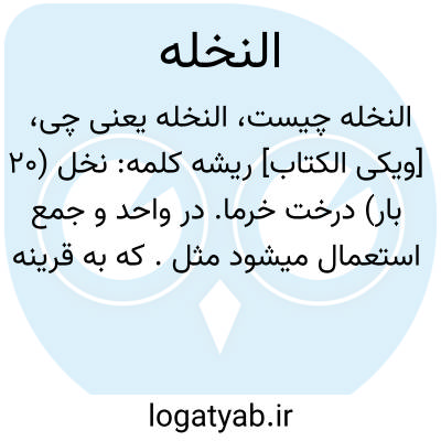 درخت خرما. در واحد و جمع استعمال می‏شود مثل. که به قرینه وصف در جمع بکار رفته و مثل. واحد آن نَخْلَة است نحو. جمع آن نخیل می‏باشد. به قولی نخیل اسم جمع است طبرسی ذیل آیه 266 بقره. نَخْل را جمع نَخْلَة گفته و گوید: اصل نخل به معنی بیختن و الک کردن آرد است و به قولی درخت خرما را از آن نخل گویند که خالص شده مانند خالص شدن مغز از قشر بوسیله الک کردن در قاموس و اقرب معنای اولی نخل را تصفیه گفته است ایضا قاموس نخل و نَخیل را جمع نَخْلَة می‏داند، در پایان ناگفته نماند که مذکر و مونث هر دو آمده است مانند..