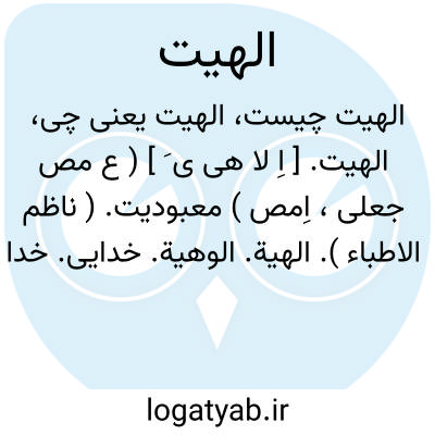 الهیت. [ اِ لا هی ی َ ] ( ع مص جعلی، اِمص ) معبودیت. ( ناظم الاطباء ). الهیة. الوهیة. خدایی. خدا بودن: