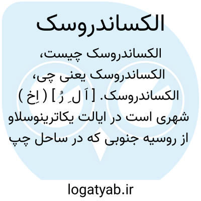 الکساندروسک. [ اَ ل ِ رُ ] ( اِخ ) شهری است در ایالت یکاترینوسلاو از روسیه جنوبی که در ساحل چپ رودخانه دنیپر بفاصله 277 هزار گز از مصب آن واقع است. ( از قاموس الاعلام ترکی ج 1 ص 330 ).