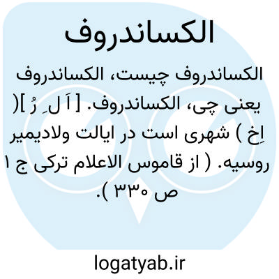 الکساندروف. [ اَل ِ رُ ] ( اِخ ) نام قصبه ای است در لهستان. ( از قاموس الاعلام ترکی ج 1 ص 330 ).