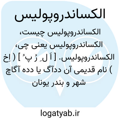 الکساندروپولیس. [ اَ ل ِ رُ پ ُ ] ( اِخ ) نام قدیمی آن ددآگ یا دده آگاچ شهر و بندر یونان در دریای اژه درمصب ماریتزا. سکنه آن 16600 تن است. در ایران باستان ( ص 283 ) چنین آمده: الکساندروپولیس نام شهری است نزدیک نسا که اسکندر آنرا بنام خود نامید - انتهی.