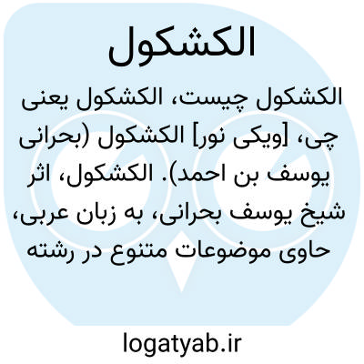 [ویکی نور] الکشکول (بحرانی یوسف بن احمد). الکشکول، اثر شیخ یوسف بحرانی، به زبان عربی، حاوی موضوعات متنوع در رشته های مختلف علمی است. این کتاب، گر چه به این نام مشهور است، ولی نام اصلی آن، طبق گفته مؤلف، «انیس المسافر و جلیس الخاطر» می باشد.