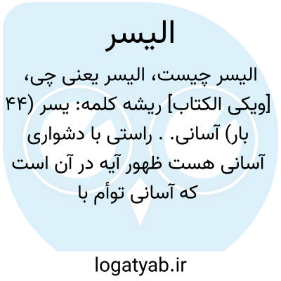 آسانی.. راستی با دشواری آسانی هست ظهور آیه در آن است که آسانی توأم با دشواری است نه بعد از آن. تیسر و استیسار به معنی آسان بودن و مقدور بودن است. اگر محصور و ممنوع شدید و نتوانستید عمل حج را به پایان برید آنچه از قربانی مقدور است بفرستید. تیسیر: آسان کردن. حقا که قرآن را برای پند گرفتن آسان کرده‏ایم آیا پندگیرنده‏ای هست؟ *.. یُسری مونث ایسر است به معنی آسانتر موصوف آن باید مثل خصلت و طاعت مونث باشد مراد از تیسیر در آیه توفیق است که نوعی آسان کردن کار می‏باشد چنانکه در مجمع و صحاح گفته است معنی آیه دوم چنین است: اما آنکه انفاق و تقوی کند و وعده نیکوی خدا را تصدیق نماید موفق می‏کنیم او را به حالت و خصلتی که کارهای خداپسند را بی آنکه سنگینی احساس کند انجام می‏دهد هر قدر تقوی بیشتر باشد عمل نیک آسانتر خواهد بود، تطوع و رغبت سبب سهولت است یا او را موفق و آماده می‏کنیم به حیات سعیده که زندگی بی ملال آخرت باشد. در آیه اول موصوف یسری ظاهراً دعوت و طریقه باشد یعنی تو را موفق می‏کنیم به دعوت و طریقه‏ای که در آن آسانی است و شاید مراد حالت و خصلت باشد مثل شرح صدر یعنی تو را موفق می‏کنیم به حالتی که سنگینی مأموریت را کم احساس کنی. یسیر: آسان.. این کار بر خدا آسان است همچنین است میسور. با آنها به زبانی نرم سخن بگو و یا وعده‏ای بده که آسان باشد. یسیر به معنی قلیل نیز آید مثل. مَیسرة: آسانی و توانگری. که به وسیله ثروت کارها آسان می‏شود. اگر قرضدار در تنگی باشد وظیفه مهلت دادن است تازمان وسعت و سهولت اداء دین. *** مَیسر: قمار. قمارباز را یاسر گویند که به وسیله آن مال دیگران آسان و بی زحمت به چنگ می‏آید.. خمر، قمار، بت‏ها، تیرهای قمار پلید و از کار شیطان می‏باشند از آنها بیرهیزید. ایضاً..