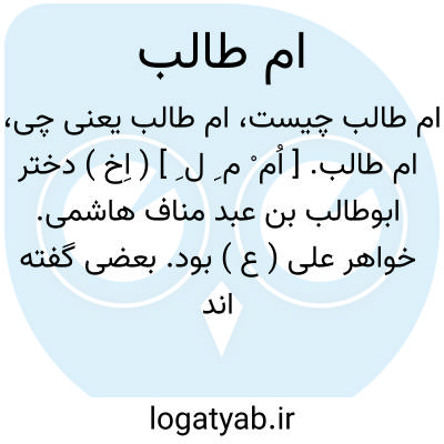 ام طالب. [ اُم ْ م ِ ل ِ ] ( اِخ ) دختر ابوطالب بن عبد مناف هاشمی. خواهر علی ( ع ) بود. بعضی گفته اند اسمش ریطة بوده. رجوع به الاصابة فی تمییز الصحابة ج 8 ص 252 شود.