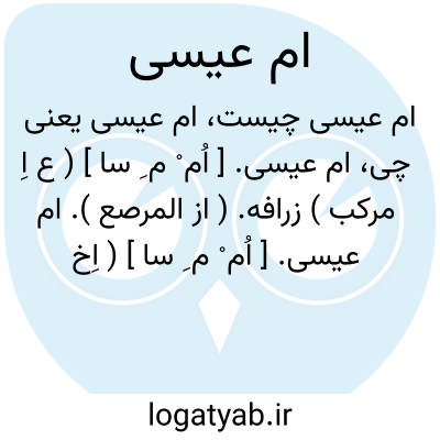 ام عیسی. [ اُم ْ م ِ سا ] ( ع اِ مرکب ) زرافه. ( از المرصع ).