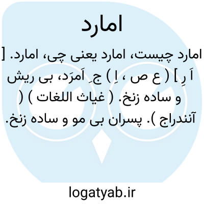 امارد. [ اَ رِ ] ( ع ص، اِ ) ج ِ اَمرَد، بی ریش و ساده زنخ. ( غیاث اللغات ) ( آنندراج ). پسران بی مو و ساده زنخ. ساده رویان. سادگان. بی ریشان. ( فرهنگ فارسی معین ). در فرهنگهای عربی به این جمع تصریح نشده است. و رجوع به امرد شود.