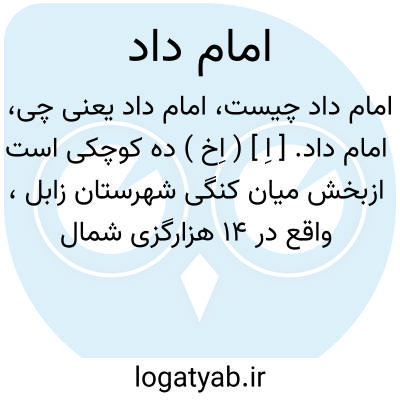 امام داد. [ اِ ] ( اِخ ) ده کوچکی است ازبخش میان کنگی شهرستان زابل، واقع در 14 هزارگزی شمال باختری ده دوست محمد نزدیک مرز افغانستان. دارای 3خانوار سکنه است. ( از فرهنگ جغرافیایی ایران ج 8 ).