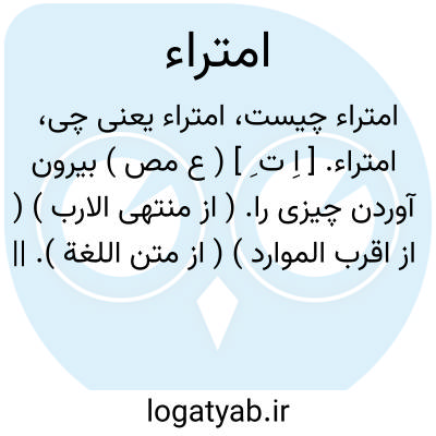 امتراء. [ اِ ت ِ ] ( ع مص ) بیرون آوردن چیزی را. ( از منتهی الارب ) ( از اقرب الموارد ) ( از متن اللغة ). || بیرون آوردن باران از ابر و شیر از پستان. ( تاج المصادر بیهقی ). آب افشردن باد ابر را و فرودوشیدن شیر را. ( از منتهی الارب ) ( آنندراج ). درآوردن باد آب رااز باران. ( از متن اللغة ) ( از اقرب الموارد ). || بشک شدن. ( تاج المصادر بیهقی ) ( ترجمان ترتیب عادل ). بشک شدن بچیزی. ( منتهی الارب ) ( از آنندراج ). شک کردن در چیزی. ( از اقرب الموارد ) ( از متن اللغة ).