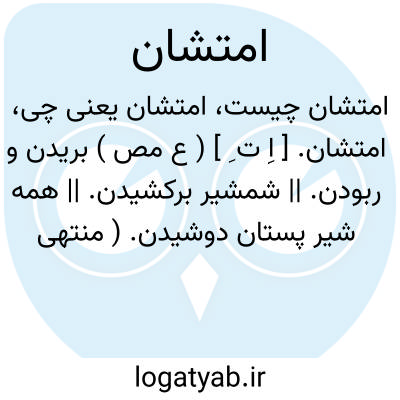 امتشان. [ اِ ت ِ ] ( ع مص ) بریدن و ربودن. || شمشیر برکشیدن. || همه شیر پستان دوشیدن. ( منتهی الارب ) ( آنندراج ) ( ناظم الاطباء )( از اقرب الموارد ). || گرفتن. || ورزیدن. ( منتهی الارب ) ( آنندراج ) ( ناظم الاطباء ).