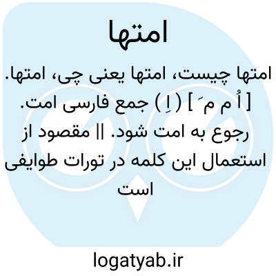 امتها. [ اُ م م َ ] ( اِ ) جمع فارسی امت. رجوع به امت شود. || مقصود از استعمال این کلمه در تورات طوایفی است که جدا از اسرائیل باشد وهرگاه قومی از اسرائیل نیز در بت پرستی افتاده باشندبه آنان نیز اطلاق شده است. ( از قاموس کتاب مقدس ).