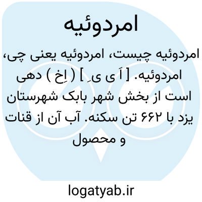 امردوئیه. [ اَ ی ی ِ ] ( اِخ ) دهی است از بخش شهر بابک شهرستان یزد با 662 تن سکنه. آب آن از قنات و محصول آنجا غلات، حبوب، کتیرا، پشم، روغن، بادام و کشک است. ( از فرهنگ جغرافیایی ایران ج 10 ).