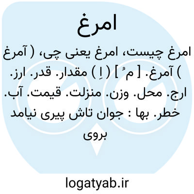 ( آمرغ ) ( اسم ) ۱ - مقدار قدر ارز ارجمع: ۲ - نفع سود فایده. ۳ - همت مقصود عالی کمال مطلوب ۴ - اندک کم.