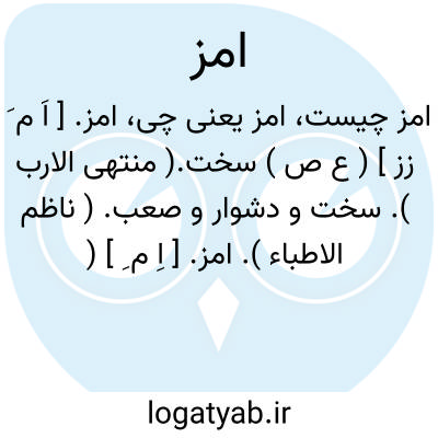 امز. [ اَ م َ زز ] ( ع ص ) سخت.( منتهی الارب ). سخت و دشوار و صعب. ( ناظم الاطباء ).