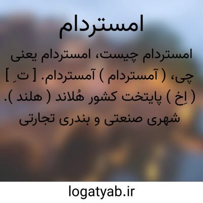 ( آمستردام ) آمستردام. [ ت ِ ] ( اِخ ) پایتخت کشور هُلاند ( هلند ). شهری صنعتی و بندری تجارتی در ساحل لامستل و ترعه ای بطول 500هزارگز آن را بدریای شمال پیوندد، دارای 749500 سکنه.