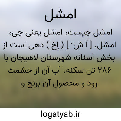 امشل. [ اَ ش َ ] ( اِخ ) دهی است از بخش آستانه شهرستان لاهیجان با 286 تن سکنه. آب آن از حشمت رود و محصول آن برنج و ابریشم وبادام زمینی است. ( از فرهنگ جغرافیایی ایران ج 2 ).
