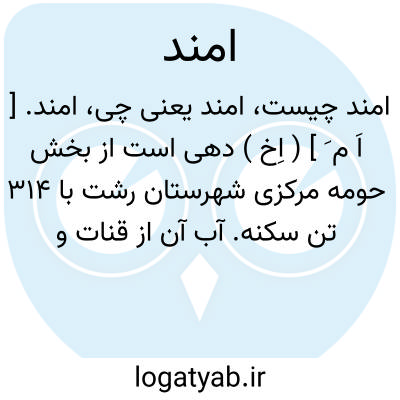 امند. [ اَ م َ ] ( اِخ ) دهی است از بخش حومه مرکزی شهرستان رشت با 314 تن سکنه. آب آن از قنات و رودخانه و محصول آن غلات، بنشن، انگور و میوه است. ( از فرهنگ جغرافیائی ایران ج 2 ).