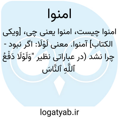 [ویکی الکتاب] آمنوا. معنی لَوْلَا: اگر نبود - چرا نشد (در عباراتی نظیر "وَلَوْلَا دَفْعُ ﭐللَّهِ ﭐلنَّاسَ بَعْضَهُم بِبَعْضٍ " معنی اگر نبود می دهد وقتی در ترکیب با فعل بیاید معنی چرا نشد یا چرا می دهد مثل "وَلَوْلَا إِذْ دَخَلْتَ جَنَّتَکَ قُلْتَ مَا شَاءَ ﭐللَّهُ ":چرا وقتی به باغ خ...