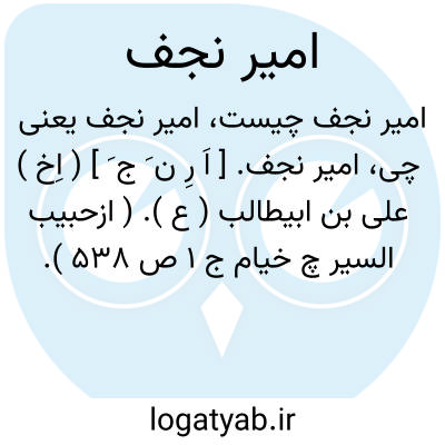 امیر نجف. [ اَ رِ ن َ ج َ ] ( اِخ ) علی بن ابیطالب ( ع ). ( ازحبیب السیر چ خیام ج 1 ص 538 ). رجوع به علی... شود.