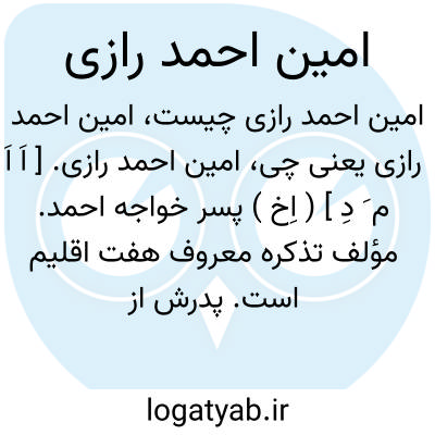 امین احمد رازی. [ اَ اَ م َ دِ ] ( اِخ ) پسر خواجه احمد. مؤلف تذکره معروف هفت اقلیم است. پدرش از طرف شاه طهماسب کلانتر ری بود و امین احمد به هند سفر کرد و هفت اقلیم را در سال 1028 هَ.ق./ 1691 م. تألیف کرد. جلد اول این کتاب به سال 1939 م. در کلکته بچاپ رسیده و نسخه های خطی آن در کتابخانه سپهسالار وکتابخانه های دیگر وجود دارد. ( از تاریخ ادبیات رضازاده شفق ص 398 ) ( از تاریخ ادبیات ادوارد براون ترجمه رشید یاسمی ص 297 ) ( از فرهنگ سخنوران ص یا ). و رجوع به فهرست کتابخانه مدرسه سپهسالار ج 2 ص 482 شود.
