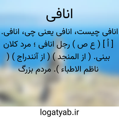 انافی. [ اُ ] ( ع ص ) رجل انافی؛ مرد کلان بینی. ( از المنجد ) ( از آنندراج ) ( ناظم الاطباء ). مردم بزرگ بینی. ( مهذب الاسماء ).