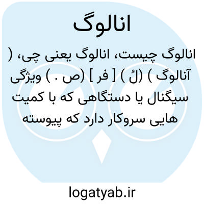 ( آنالوگ ) (لُ ) [ فر ] (ص. ) ویژگی سیگنال یا دستگاهی که با کمیت هایی سروکار دارد که پیوسته تغییر می کند. مق. دیجیتال.