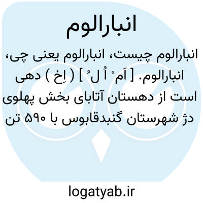 انبارالوم. [ اَم ْ اُ ل ُ ] ( اِخ ) دهی است از دهستان آتابای بخش پهلوی دژ شهرستان گنبدقابوس با 590 تن سکنه. آب آن از رودخانه گرگان و محصول آن غلات، حبوب، صیفی و لبنیات است. ( از فرهنگ جغرافیائی ایران ج 3 ).