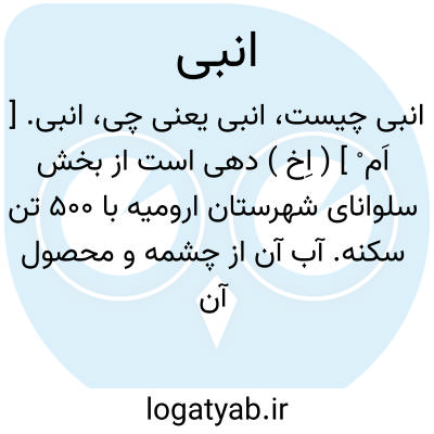 انبی. [ اَم ْ ] ( اِخ ) دهی است از بخش سلوانای شهرستان ارومیه با 500 تن سکنه. آب آن از چشمه و محصول آن غلات و توتون است. ( از فرهنگ جغرافیائی ایران ج 4 ).