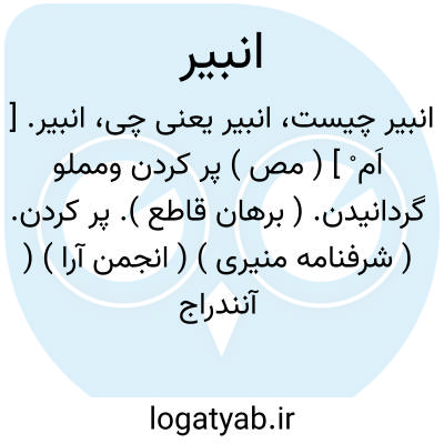 انبیر. [ اَم ْ ] ( مص ) پر کردن ومملو گردانیدن. ( برهان قاطع ). پر کردن. ( شرفنامه منیری ) ( انجمن آرا ) ( آنندراج ). انباشتن و پر کردن، بدین معنی اماله انبار است. ( فرهنگ رشیدی ). || امر بدین معنی هم هست. ( برهان قاطع ). || پری و امتلاء. ( ناظم الاطباء ). || ( اِ ) گل خشک و گل تر. ( برهان قاطع ) ( آنندراج ) ( انجمن آرا ).گل سرخ خشک و تر هر دو. ( ناظم الاطباء ). گل خشک و تر. ( فرهنگ رشیدی ). و گفته اند از لغات اضداد است. ( انجمن آرا ). || گل و لای. ( ناظم الاطباء ). || کیش و مذهب و دین و آیین. ( برهان قاطع ) ( ناظم الاطباء ) ( از هفت قلزم ). آیین و مذهب. ( آنندراج ).