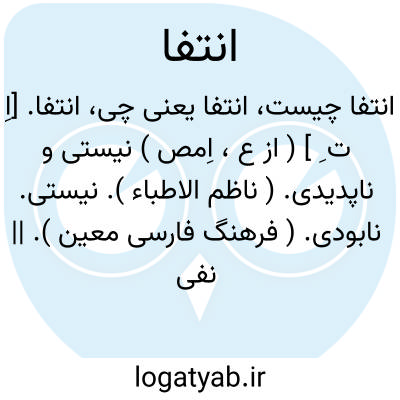انتفا. [اِ ت ِ ] ( از ع، اِمص ) نیستی و ناپدیدی. ( ناظم الاطباء ). نیستی. نابودی. ( فرهنگ فارسی معین ). || نفی شدگی. || دورکردگی. ( ناظم الاطباء ).